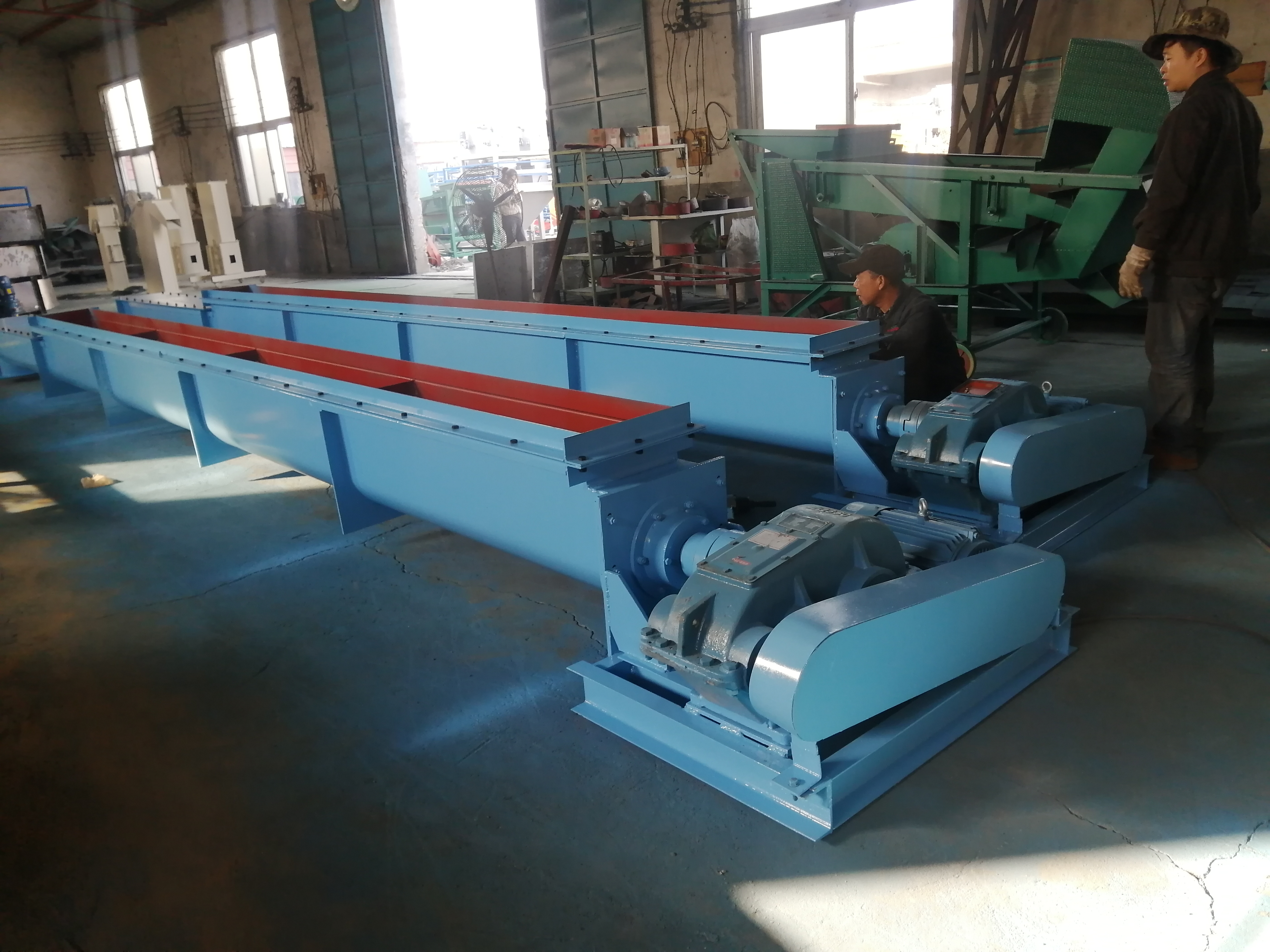 無軸螺旋輸送機扭矩大、能耗低、由于螺旋輸送機無軸、物料不易堵塞、排料口不易堵塞。
